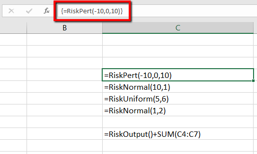 Figure 3 - @RISK Formula - Excel Dynamic Array