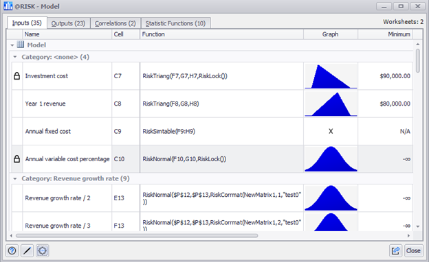 There is a new Error handling functionality that will identify misconfigured or incorrect @RISK elements, including distribution functions, outputs, and @RISK statistic functions.