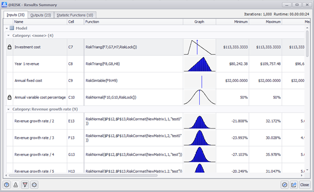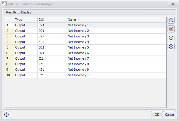 All @RISK functions with error warnings can be filtered in the Model List and the Results Summary Windows using the new Issue View button (
