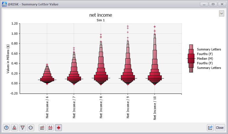 The Letter Value graph is a new Summary Graph that takes a Box Plot Graph to the next level! It graphs the spread with a variable number of letter value boxes. You will be able to visualize better estimates further out into the tails and reduced number of “outliers” displayed for large data sets.