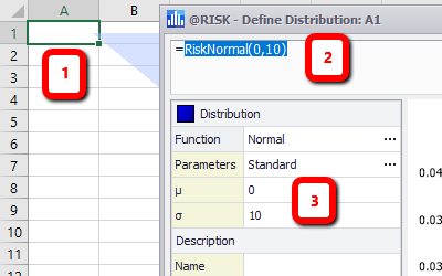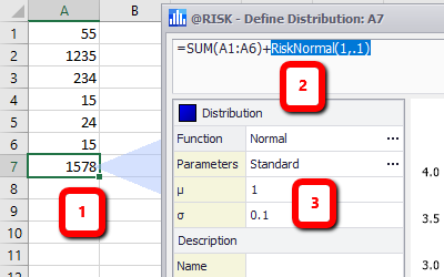 - A Normal distribution (RiskNormal function) is selected