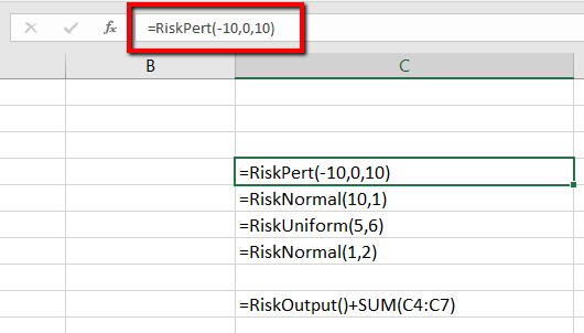 - Si Excel ha preparado automáticamente una función @RISK con el símbolo @, no tiene ningún efecto en el comportamiento matemático del modelo.
