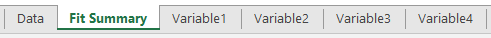 The most significant difference between running a Standard Fit and a Batch Fit is the manner in which the results are reported; a Standard Fit will return the Fit Results window, whereas a Batch fit will generate several additional Excel worksheets (Figure 1, right) that contain the results and statistics of the fitting process for every data set included in the batch. For example, Figure 1 shows the resulting worksheets created when running a Batch Fit against four data sets; a Fit Summary sheet is created as well as detailed statistics for each of the data sets.
