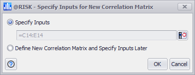 Once inputs have been specified, or if the option 'Define New Correlation Matrix and Specify Inputs Later' is chosen, the Define Correlation window will open. See Define Correlation Window for more information.