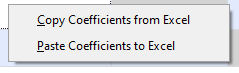 Right-click within the correlation matrix to open a context menu (Figure 2, right) with options to copy coefficient values from Excel, or to paste the existing coefficient values into an Excel worksheet.