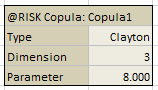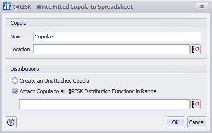 To use a fitted copula in an @RISK model, give the Copula a Name and select a location for the copula data.