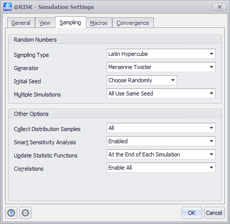 These settings control the methods by which @RISK will generate random values for distribution samples for all @RISK input functions.