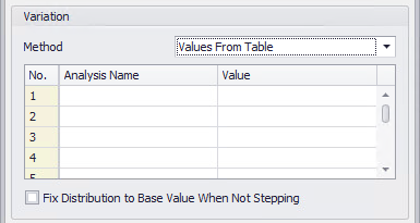 The Variation method chosen will determine the analysis name for each simulation run; see Analysis Names for more information.