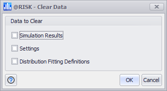 The Clear @RISK Data command clears the selected @RISK data from all open workbooks. Selecting this command will open the Clear Data window (Figure 1, right).