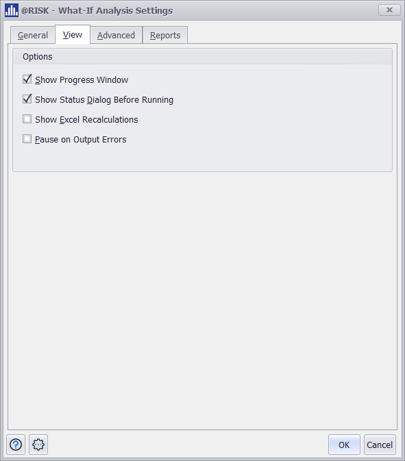 Displays a real-time progress window during the What-If analysis to visualize the steps being executed. Similar to the @RISK Progress Window.
