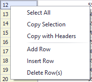 To add a percentile, enter a value in the Percentile field of the last row and hit 'Enter'. Alternately, right click a row to open the context menu (Figure 2, left), and select 'Insert Row' to create a new row below the selected row, or 'Add Row' to add a new row to the bottom of the table. Enter a percentile value for the new row.
