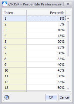 Some reports have a limited number of percentiles that can be displayed. If more percentiles are specified than can be actually shown, @RISK will work its way “outside-in” choosing the most extreme percentiles on either side, along with the center percentile (typically the 50th percentile).