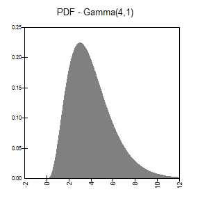 RiskGamma specifies a gamma distribution with shape parameter alpha and scale parameter beta. The Gamma distribution often represents the distribution of interarrival times for several events from a Poisson process. More generally, it can be used to model a nonnegative value when skewness is desired. In a Bayesian context, it can be used to represent the distribution of possible values for the rate of a Poisson process, based on observations of the process.