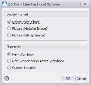 • Placement - Select where the chart will be inserted - into a new workbook, a new worksheet in the active workbook, or in a custom location that is specified after the dialog is closed.