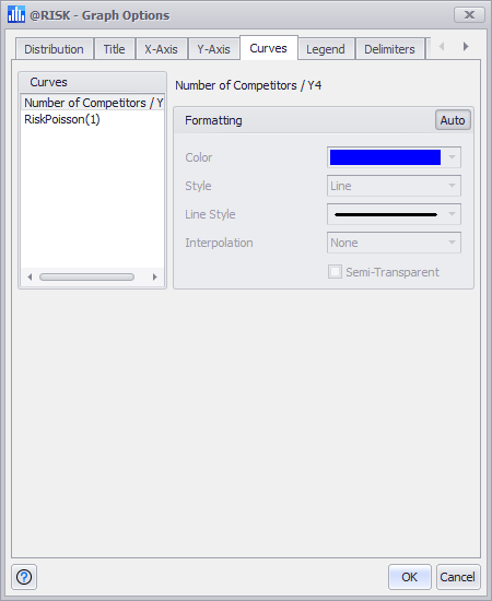 The options on the Curves tab specify the color and style for each curve in the graph.