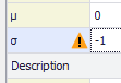 When configuring a distribution function through the Define Distribution window, a warning icon will appear beside any parameter that has an incorrect value (Figure 2, right). Warning icons will appear as the distribution is configured, providing nearly-live feedback.