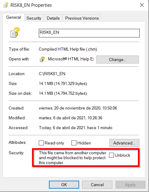 To unblock a downloaded CHM file, right-click the file and select Properties, then check the Unblock checkbox at the bottom of the General tab (Figure 1, right).