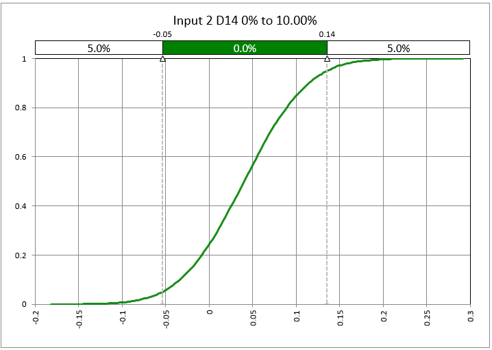 Similar to the Histogram option, the CDF - or Cumulative Distribution Function - option will create a cumulative distribution graph for both the baseline and each of the stressed inputs and add those graphs to the same worksheet.