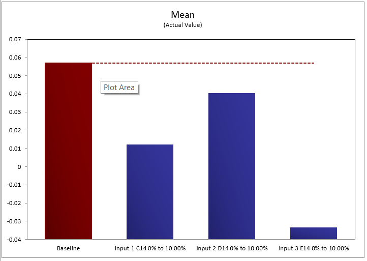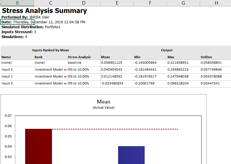 The Comparison Graph option generates a standard bar graph for each statistic (Mean, Median, etc.) that displays each of the stressed inputs alongside the baseline (unstressed) value.