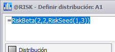 Cuando una distribución se configura para utilizar su propia Semilla, la función de propiedad @RISK RiskSeed se añade a la función como un argumento opcional (Figura 1, derecha).