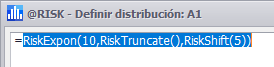 Cuando una distribución se configura para utilizar un Factor de Desplazamiento, la función de propiedad @RISK RiskShift se añade a la función como un argumento opcional (Figura 1, derecha).