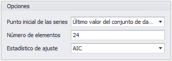 Figura 1 - Opciones de datos de ajuste de series de tiempo