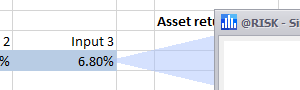 The Browse Results window (Figure 2, below) is the primary interface for Browse Mode, and one of the most common methods for analyzing the results of a simulation. The contents of the Browse Results window will update to display information about an input or output when that element is selected; @RISK uses a callout (Figure 1, right) to indicate which element is currently selected in the model.