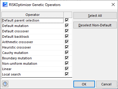RISKOptimizer includes several specialized genetic operators, including the following primary options:
