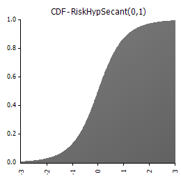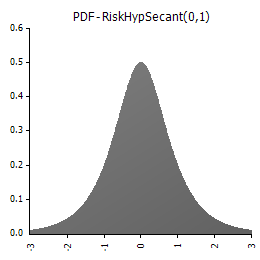 RiskHypSecant(0,1) devuelve una distribución HypSecant con un parámetro de ubicación de 0 y un parámetro de escala de 1.
