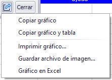 Las ventanas que muestran gráficos tienen un conjunto estándar de opciones de exportación. Vea Exportación de gráficos para mayor información.