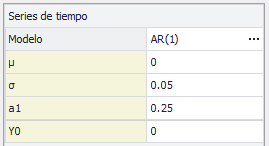 ) indica un menú u otra ventana para seleccionar opciones de configuración. Por ejemplo, en la ventana 'Definir series de tiempo' el botón 'Más' abrirá la ventana 'Seleccionar una función', donde se puede seleccionar un modelo de series de tiempo diferente.