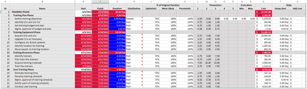 SRA schedule simulation was improved to consider inactive tasks previously defined in MS Project or Primavera. Inactive tasks now have a different format in the Model Worksheet, Gantt Chart, and SRA Reports.
