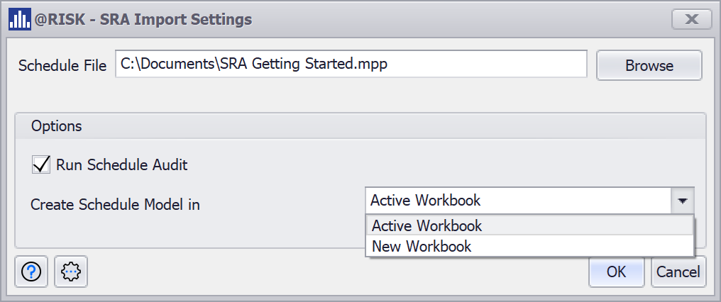 @RISK SRA opens the selected file and reads the tasks and resource information from the schedule. It then builds the model Excel worksheet.