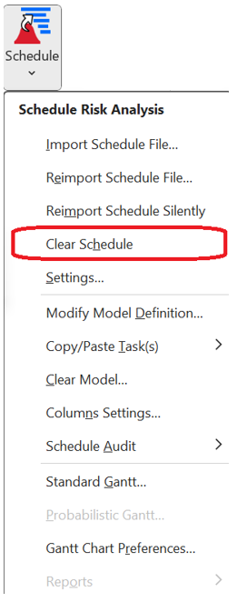 The Clear Schedule functionality lets users remove all the imported schedule information from the workbook.