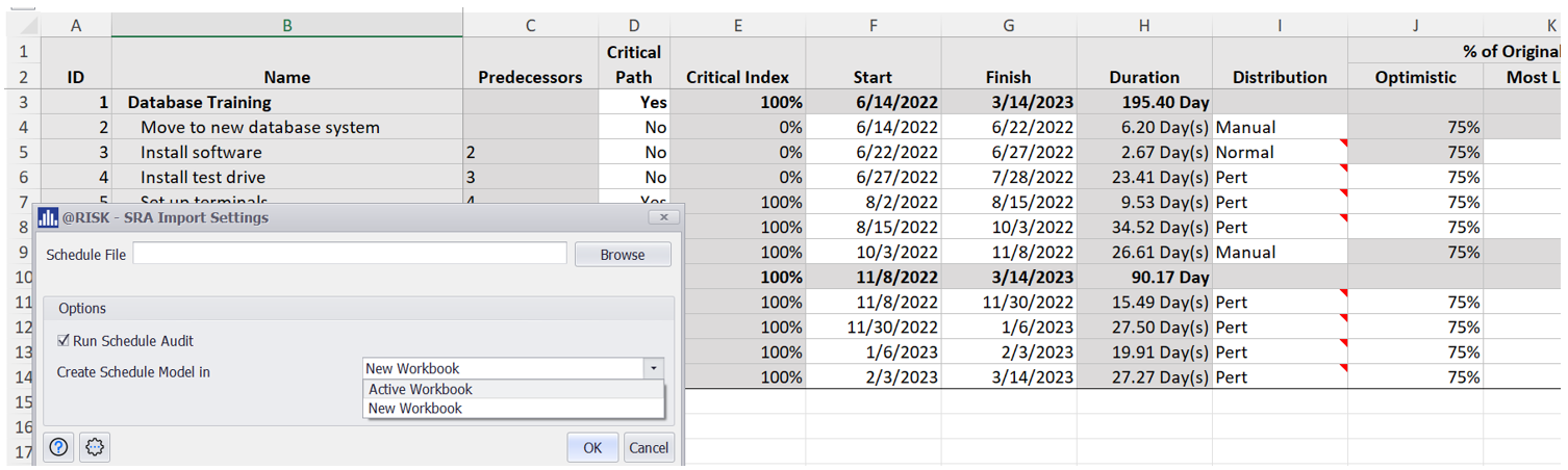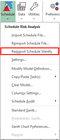 The Replace functionality improves the Import Schedule File. With this new version, the user can import a project file to the Active workbook even if it already has a defined SRA Model.