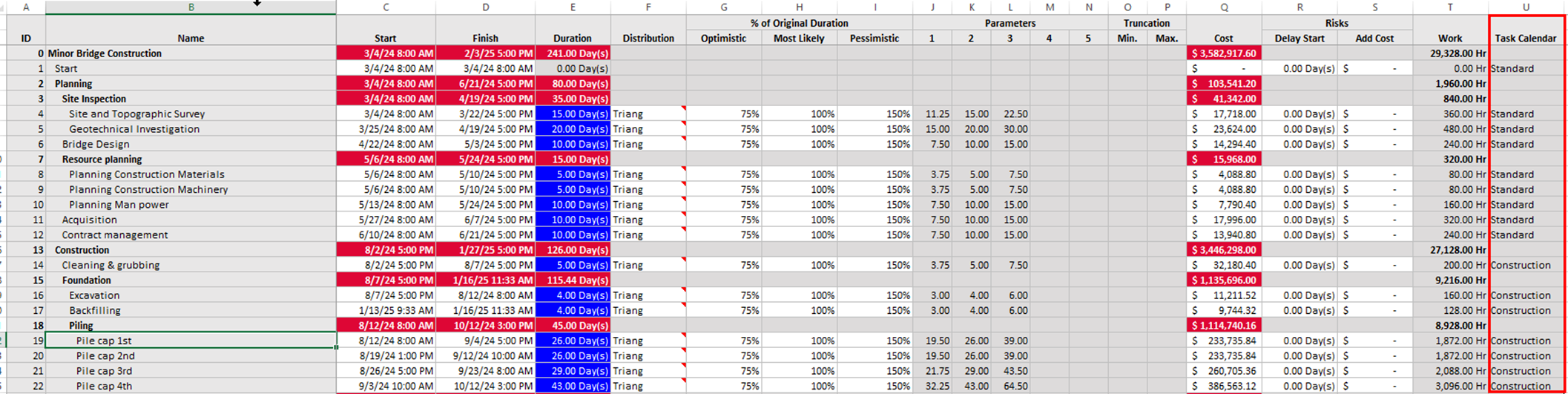 For both the Clear and Replace Schedule options, the SRA Model worksheet will keep the SRA Model table headers, user definitions in columns to the right, and additional worksheets the user defines. Users could import any project to this workbook and adapt their Excel definitions to the new project.