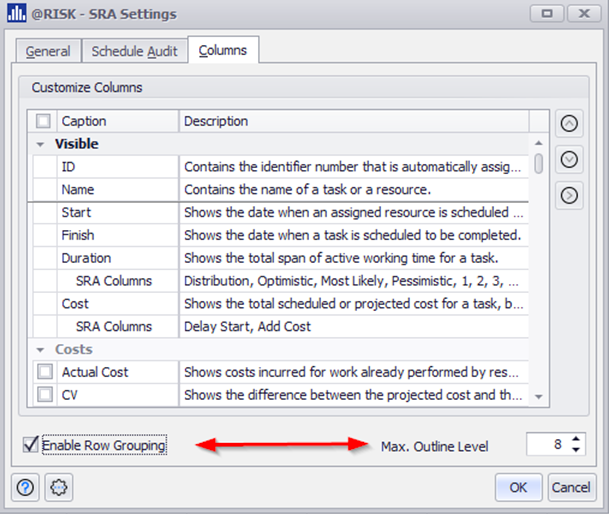 As a user I want to be able to add Summary Task Name field to my SRA Model Columns |